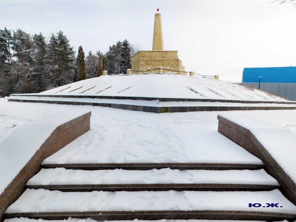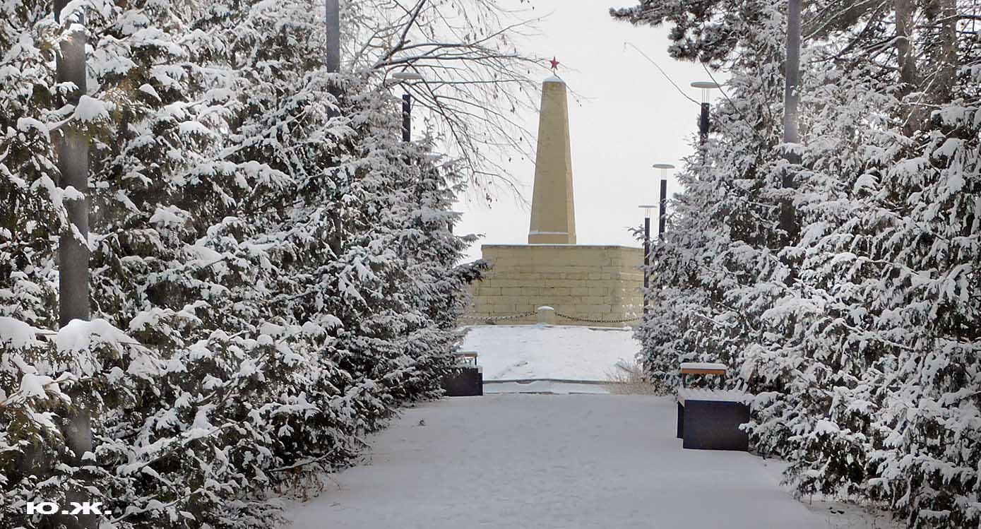 Хорошо вписывается стоящий на холме мемориал героям Гражданской войны. Он будет реставрироваться. Отсюда открывается вид и в сторону озера, на запад, и в сторону города, и на Джинальский хребет, на восток.