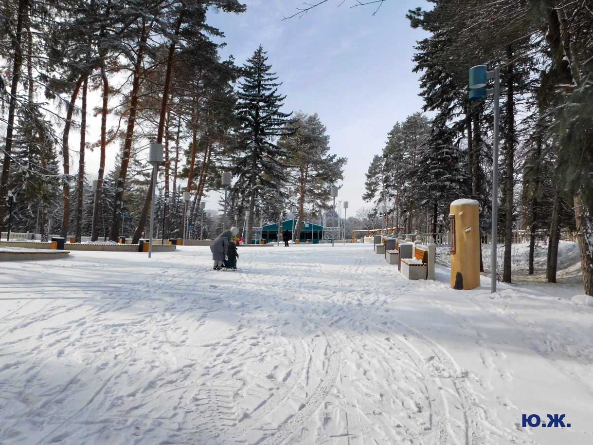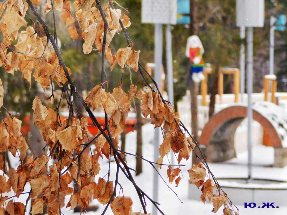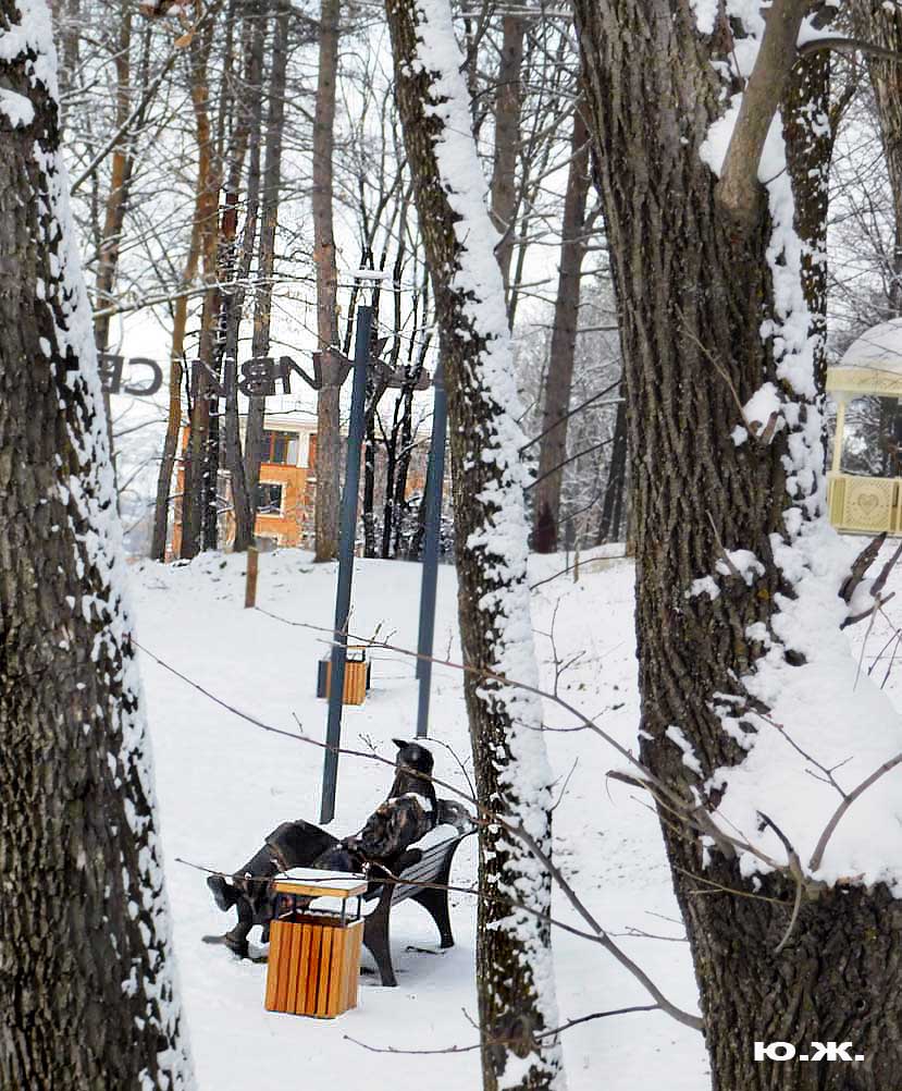 Температура падает. Рабочий показывает на телефоне предупреждение — С.К. минус 21. Будем теперь ждать, какой сюрприз нам преподнесет Комсомольский Парк по весне.