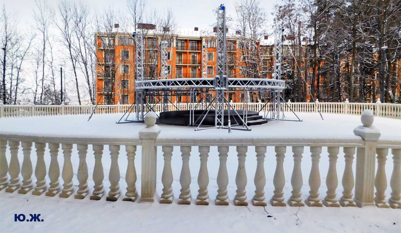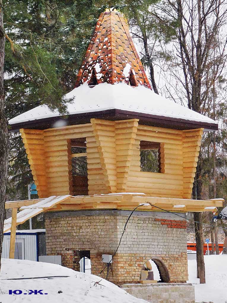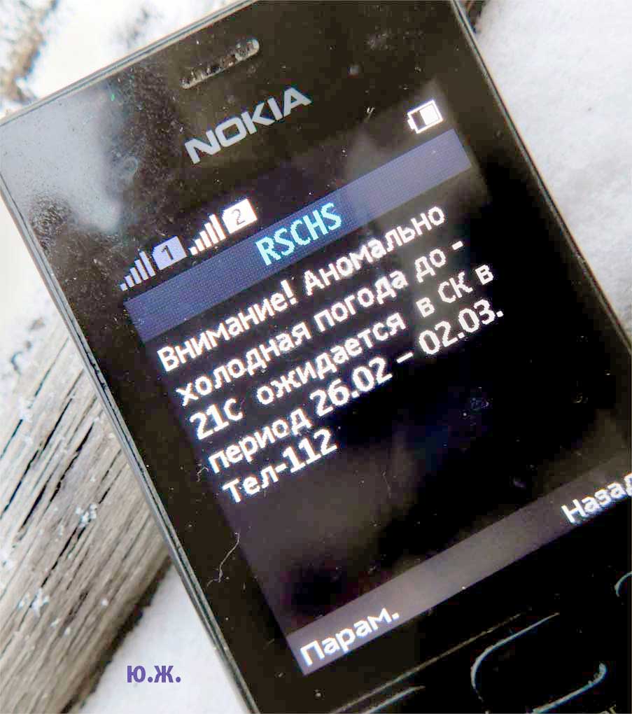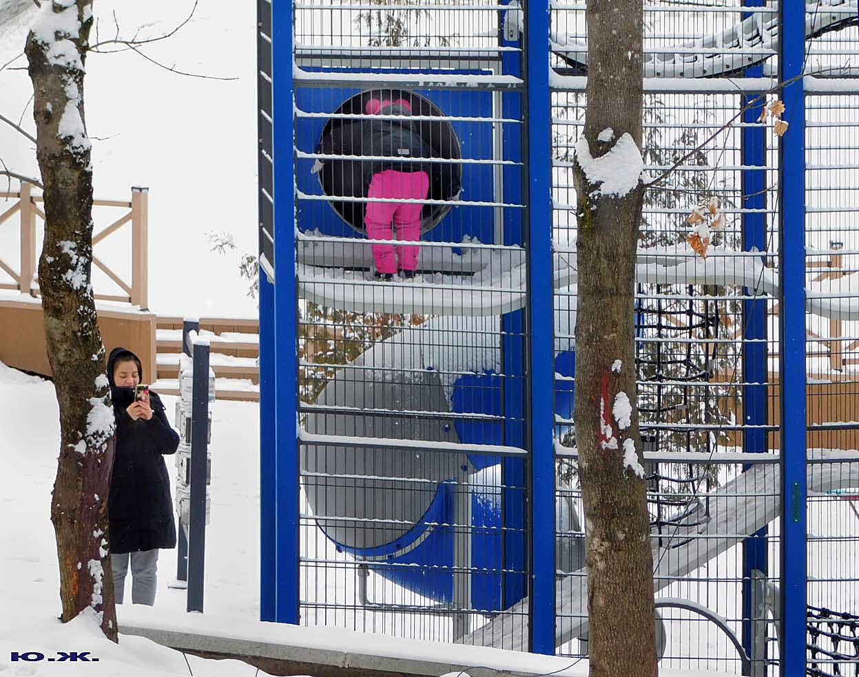Температура падает. Рабочий показывает на телефоне предупреждение — С.К. минус 21. Будем теперь ждать, какой сюрприз нам преподнесет Комсомольский Парк по весне.