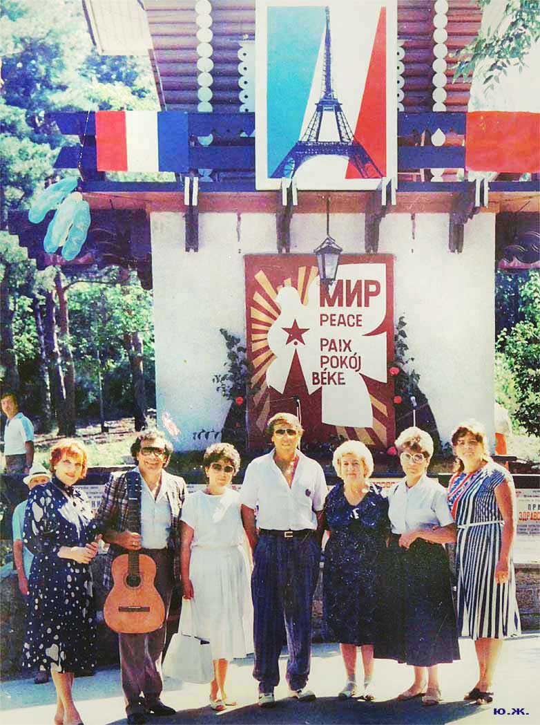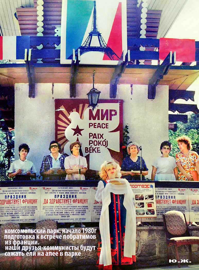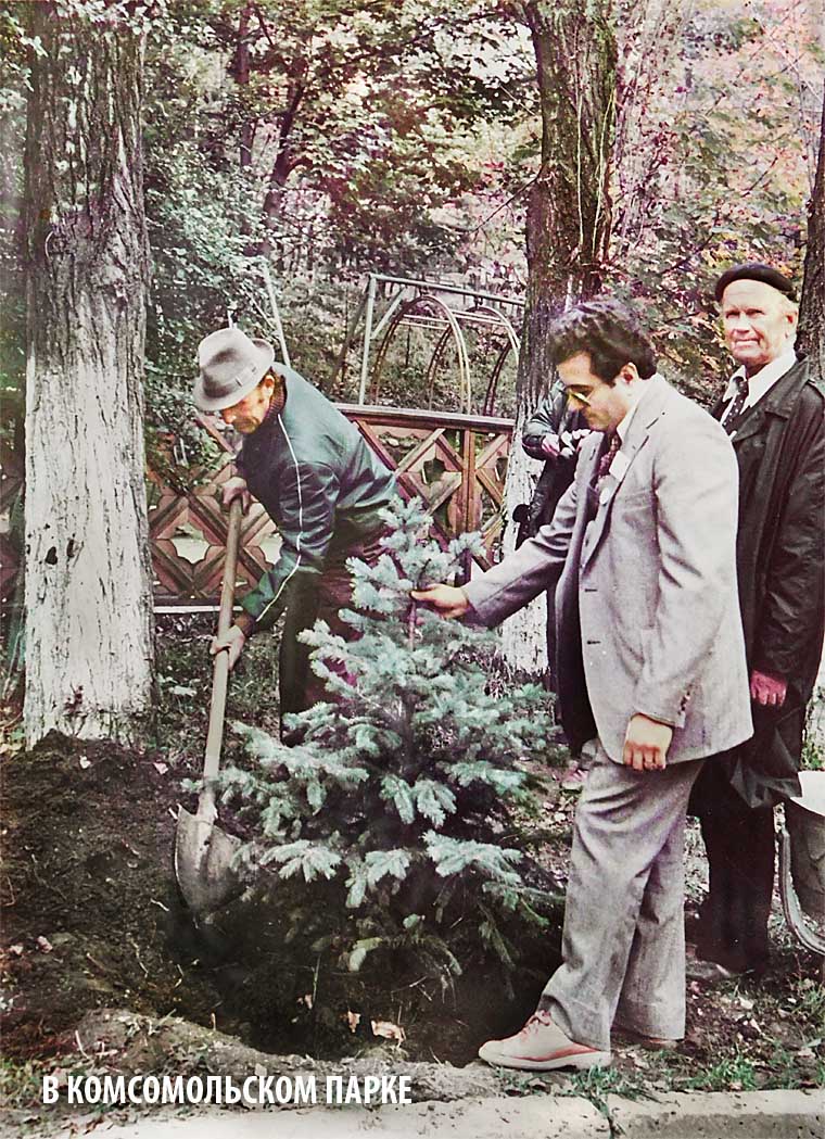 Очень хорошо, что оставили в Парке красивую башню со шпилем и мост, который был популярным у нас в 1970-1980 годы. У меня остались слайды и фото, архивные снимки тех лет. Решил показать несколько из них начала восьмидесятых годов, когда много лет мы активно были побратимами французского города-курорта Экс-ле-Бена, а они — нашего Кисловодска. Это были французские коммунисты. Они приезжали к нам, мы — к ним. На снимках мы в Кисловодском парке готовим встречу с ними, как раз у башни со шпилем, постройка которой скоро заканчивается, (см. фото). На другом снимке руководитель Ассоциации Кисловодск — Экс-ле-Бен сажает на алее парка сосну. Все мы моложе здесь на сорок лет…