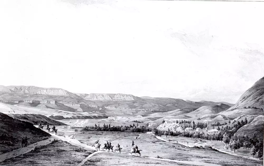 Зато многим давно и хорошо известна серия карандашных рисунков переселившегося в Россию художника-венгра Михаила Александровича Зичи, созданная в 1881 г., чтобы проиллюстрировать роман М.Ю. Лермонтова «Герой нашего времени». В этой серии есть несколько замечательных видов Кисловодска: Ресторация, дом А.Ф. Реброва, скала близ Кисловодска (Лермонтовская скала в ущелье Ольховки), Кольцо-Гора.