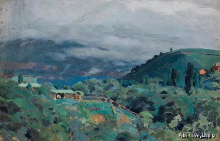 Новые интересные страницы в «художественную летопись» Кисловодска добавил ХХ век. В 1913 году в Кисловодске побывал один из наиболее самобытных мастеров отечественного изобразительного искусства – Николай Константинович Рерих. Остановился он в знаменитом пансионе С.Н. Ганешина (ныне кардиологическая клиника ФМБА России). В Кисловодске Николай Константинович начал работу над картиной «Показали царю границу царства», а также писал статью «Индийский путь», очерк «Дедушка», сказки «Граница царства» и «Города пустынные». Совсем недавно только была обнаружена выполненная им в Кисловодске работа – пейзаж под названием «Ковчег-гора. Кисловодск». Так Рерих назвал гору, которая нам известна как Кабан. Судя по ракурсу, картина представляет собой вид на гору Кабан с отрога Джинальского хребта, на который туристов уже 45 лет поднимает канатная дорога. В старину этот отрог именовали Синими Горами.
